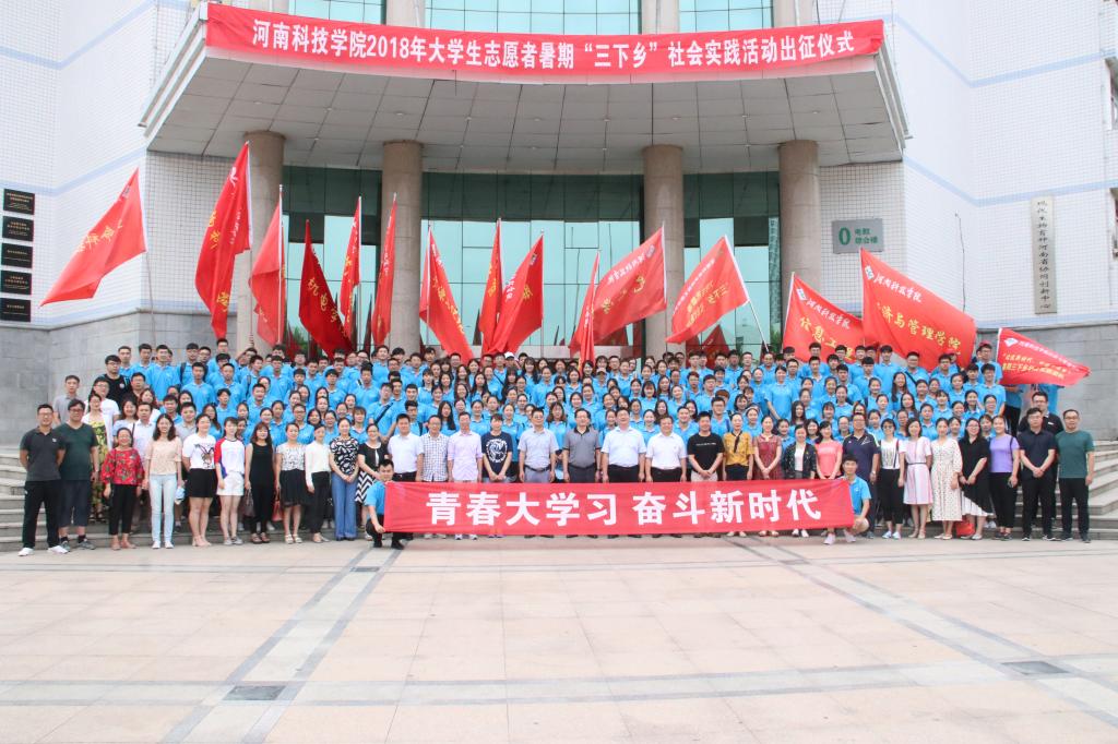 为深入开展学习贯彻习近平新时代中国特色社会主义思想主题教育,引领教育资源与环境学院学生勇做担当民族复兴大任的时代新人,切实在感受改革开放40年取得的新成就新面貌的生动实践中受教育,长才干、作贡献,资源与环境学院三支2018年大学生志愿者暑期“三下乡”社会实践团队于7月8日上午7:30参加了在学校零号教学楼前举行的‘91偷拍 2018年大学生志愿者暑期“三下乡”社会实践活动出征仪式’。出席本次活动的有党委宣传部部长陈红卫老师、马克思主义教育学院党委书记郭立老师、党委学工部副部长、学生处副处长马新岭老师、校团委副书记于江傲老师、校团委组宣部部长李鹏老师、校学生会主席吕若威同学,其它院级暑期三下乡实践团队也参加了本次活动。
