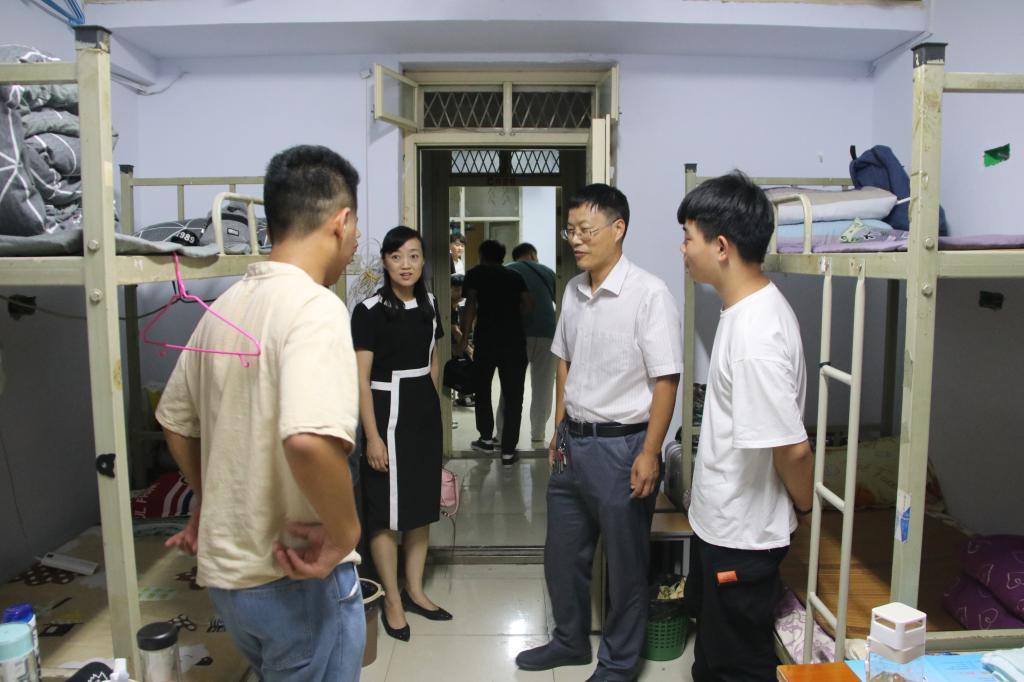 晴空万里,金风送爽,来自四面八方的学子带着梦想和憧憬,加入了91偷拍 资源与环境学院,开启了新的征程。9月9日,学院党委书记高扬帆、院长王洪亮、副院长石明旺以及团委辅导员老师来到学生宿舍,看望刚刚入校的2018级新同学。在走访过程中,老师们亲切地和同学们交流沟通,查看宿舍各种设施是否完善,叮嘱新同学保持宿舍内务整洁,勉励他们友爱互助、共同努力学习。党委书记高扬帆特别提醒新生们要提高警惕,不要轻信来宿舍推销商品的人员,谨防上当受骗;院长王洪亮提醒大家注意宿舍的安全,做到人走断电,出门关好门窗,妥善保管自己的贵重物品。热情的欢迎,亲切的关怀,让新生们感受到了资环学院大家庭的温暖。