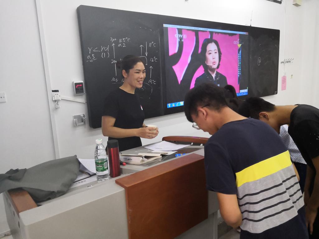 课堂上,同学们全体起立,向老师道一声“教师节快乐”,并鞠躬致谢,感谢老师们的辛勤付出。同时同学们也自发带来暖水瓶,在课间为辛苦上了一节课的老师送上一杯热水。