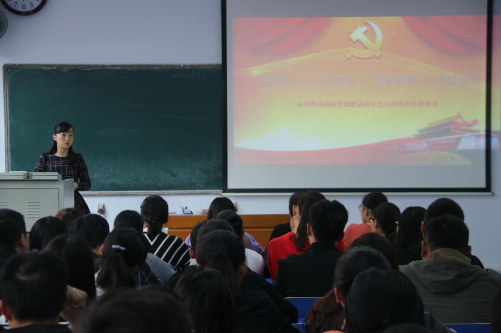 10月13日上午,团委书记叶晖围绕“不忘初心、牢记使命,高举旗帜,团结奋进”主题,带领全体积极分子从党代会的历史维度认识中共一大到十九大的伟大历史,并就此与全体积极分子开展讨论;姜丽娟老师着重强调了中共十九大通过的《中国共产党章程(修订案)》中的13处重要修改内容,并要求同学们熟记于心。下午,李沐老师以“端正入党动机,坚定理想信念,做合格党员”为主题,教育同学们如何端正入党动机。