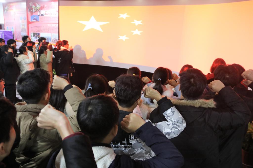 同学们面向国旗,握紧拳头,在宋晓珂的带领下庄严宣誓:“铭记历史,勿忘国耻;以史为鉴,矢志复兴;珍爱和平,吾辈自强;砥砺前行,奋发图强”。宣誓后同学们参观了国情国史体验馆,了解中国历史,展望祖国未来。