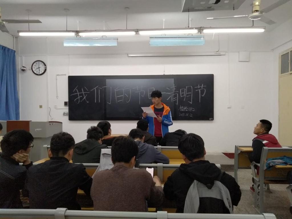 4月2日至4月3日,各团支部组织召开清明节主题班会,拓展清明知识典故,学习优秀先烈精神。