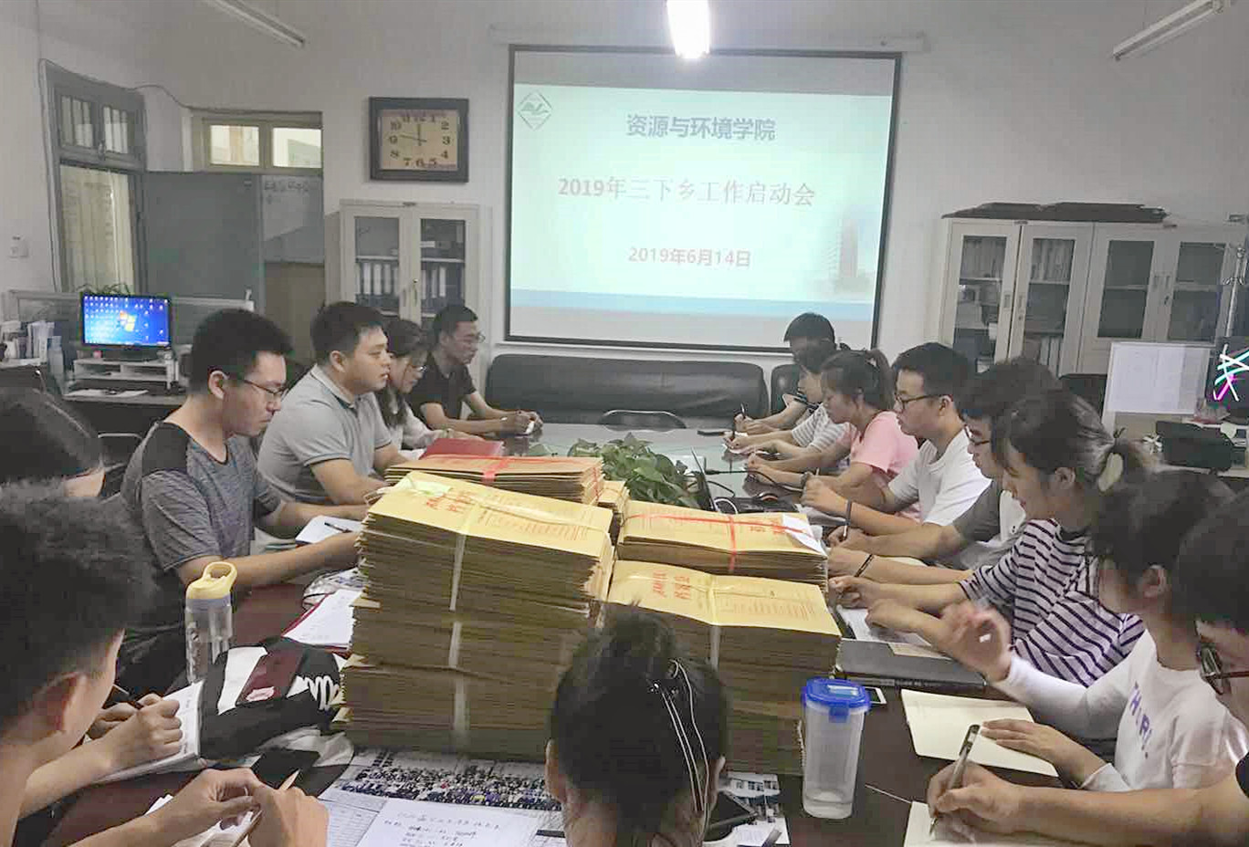 6月14日上午,资源与环境学院于实验楼E301召开2019年暑期“三下乡”工作启动会,学院辅导员侯超逸、宋晓珂、王辉及“三下乡”社会实践团队主要负责人参加会议。