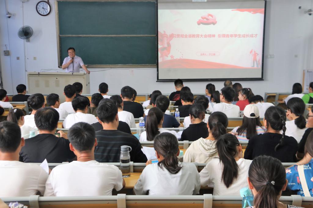 会上,于江傲以“学习贯彻全省教育大会精神,引领青年学生成长成才”为题作主题宣讲报告,从“全省教育大会召开的背景”“充分认识全省教育大会的意义”“学习贯彻全省教育大会精神的重点任务”“引领青年学生成长成才”四个方面对全省教育大会精神作宣讲。