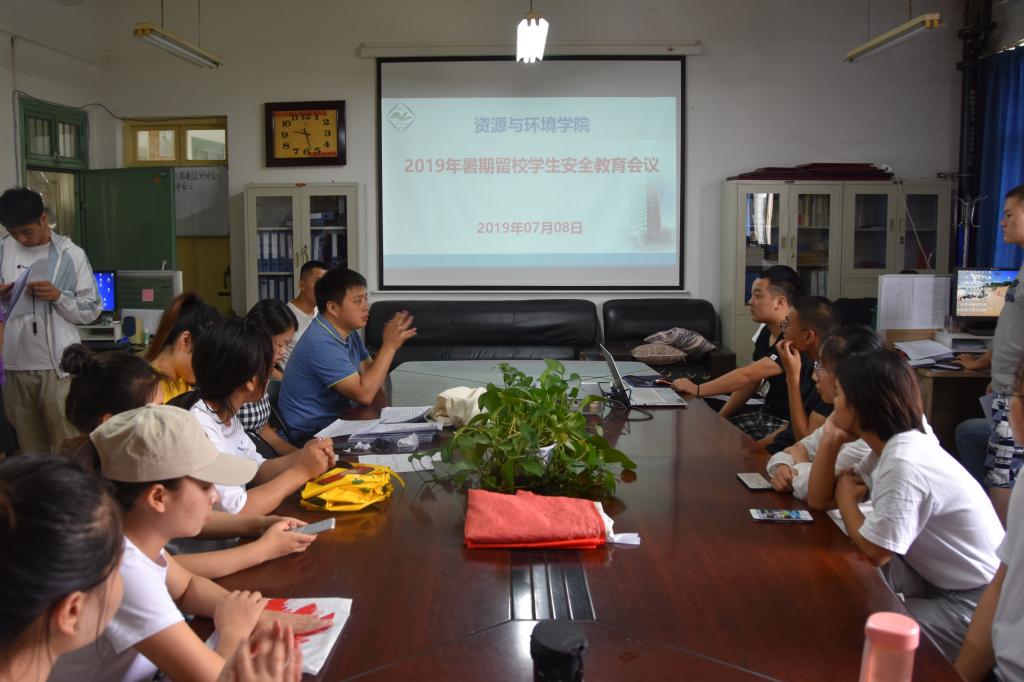 7月8日上午,资源与环境学院于实验楼E301召开2019年暑期留校学生安全教育会议,学院团委负责人与全体留校学生参加会议。