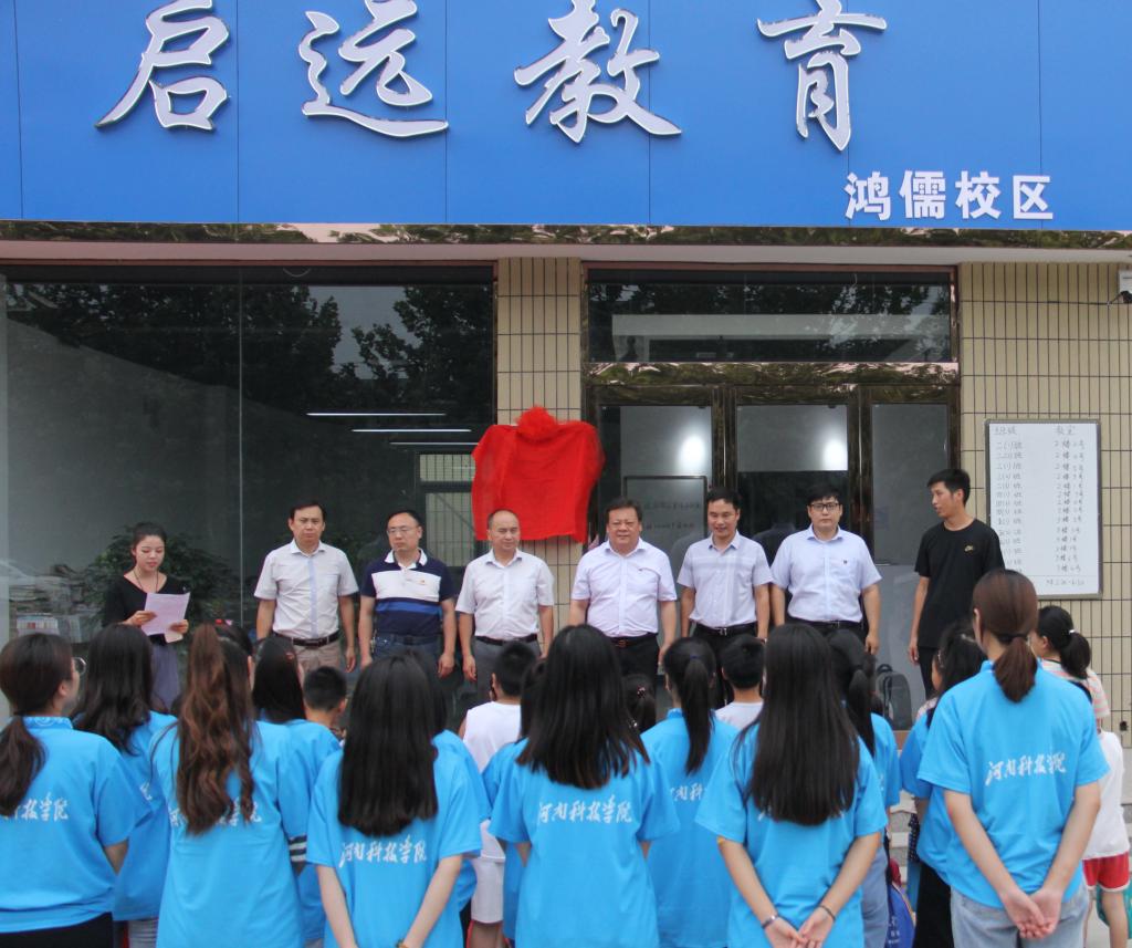 7月8日,我校大学生社会实践基地在新乡县古寨新村启远教育举行揭牌仪式。校团委书记于江傲、副书记袁博、资环学院党委副书记刘军锋、数学科学院学院团委书记贾普君、外语学院团委副书记时文鹏、古固寨中心校校长孔祥峰、我校校友、启远教育创始人张伦出席揭牌仪式并为实践基地揭牌。