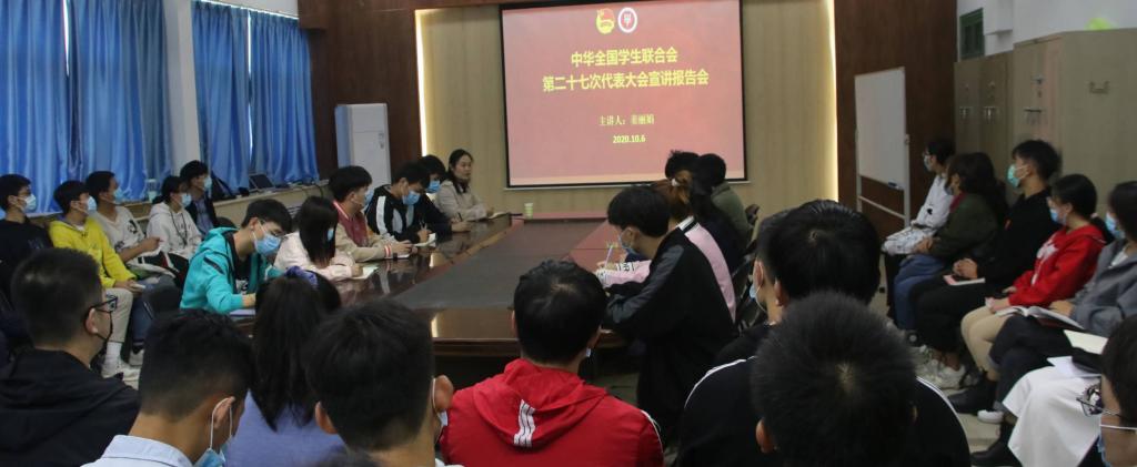 首先,姜丽娟老师带领同学们学习了习近平总书记的贺信全文,解读了全国学联二十七大开幕式及闭幕式上领导的致辞,并带领大家学习了报告主要内容。