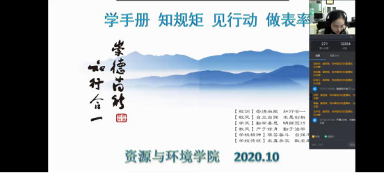 为切实做好2020级新生入学教育工作,引导新生更好地适应大学学习和生活,10月11日-25日,资源与环境学院从疫情防控知识学习、理想信念教育、资助政策及诚信感恩教育、校规校纪及基础文明教育、安全教育等方面入手,开展了内容丰富的新生入学教育系列活动。