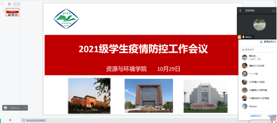 10月29日晚上,资源与环境学院团委组织全院学生在线上召开各年级疫情防控主题会议。
