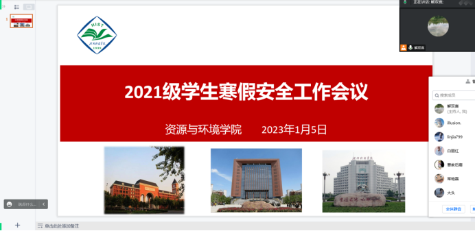 2023年1月4日至1月6日,资源与环境学院分别召开了各年级寒假安全教育大会。