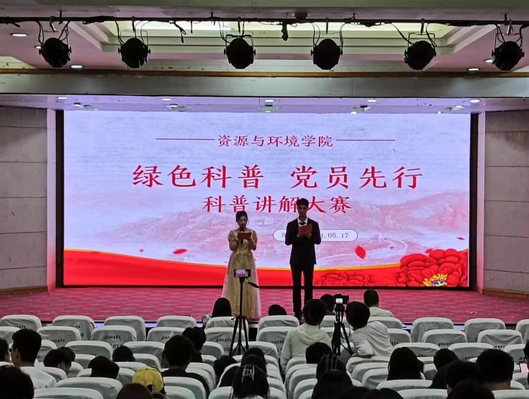 为深入贯彻党的二十大精神,切实落实《关于新时代进一步加强科学技术普及工作的意见》,助力党支部党员和积极分子在科研学习中全面发展,资源与环境学院学生第一党支部于2024年5月踊跃参加学院组织的“绿色科普,党员先行”讲解大赛。