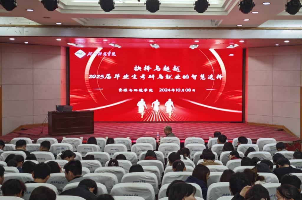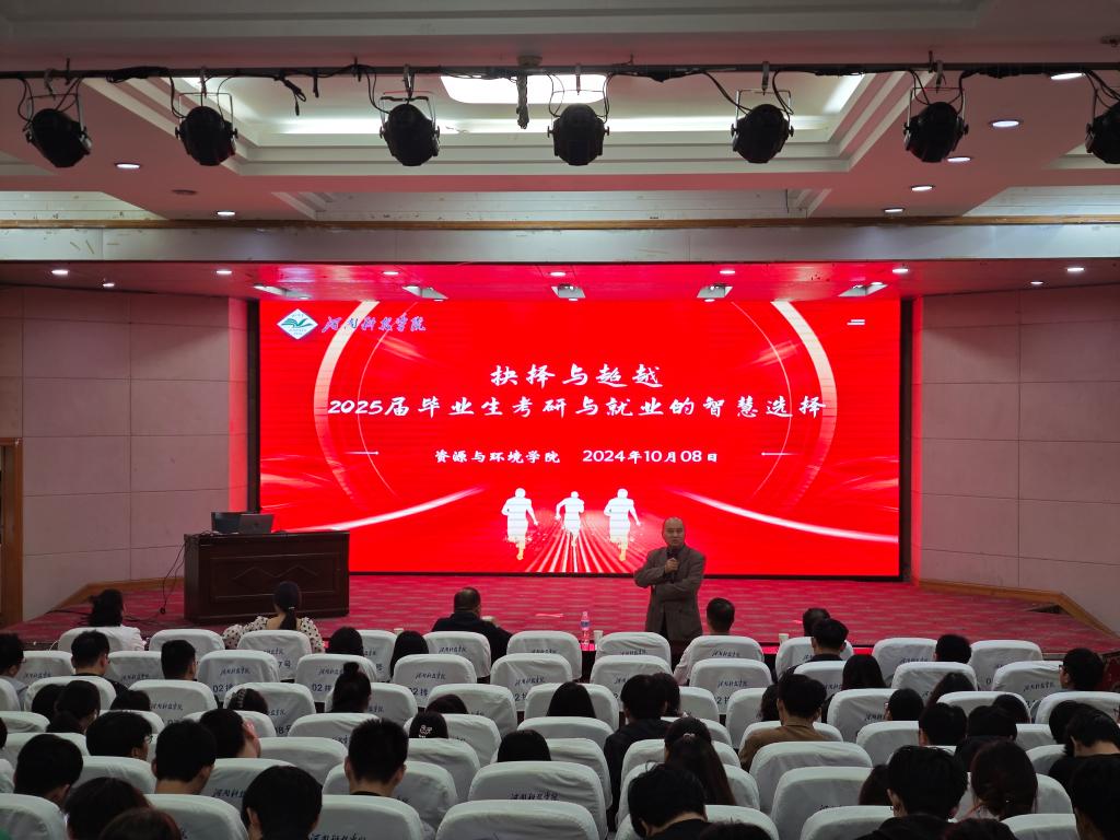 10月8日下午,资源与环境学院在图教201报告厅举行了2025届毕业生考研与就业动员会。院长刘润强、院党委副书记刘军锋及全体辅导员参加了动员会。