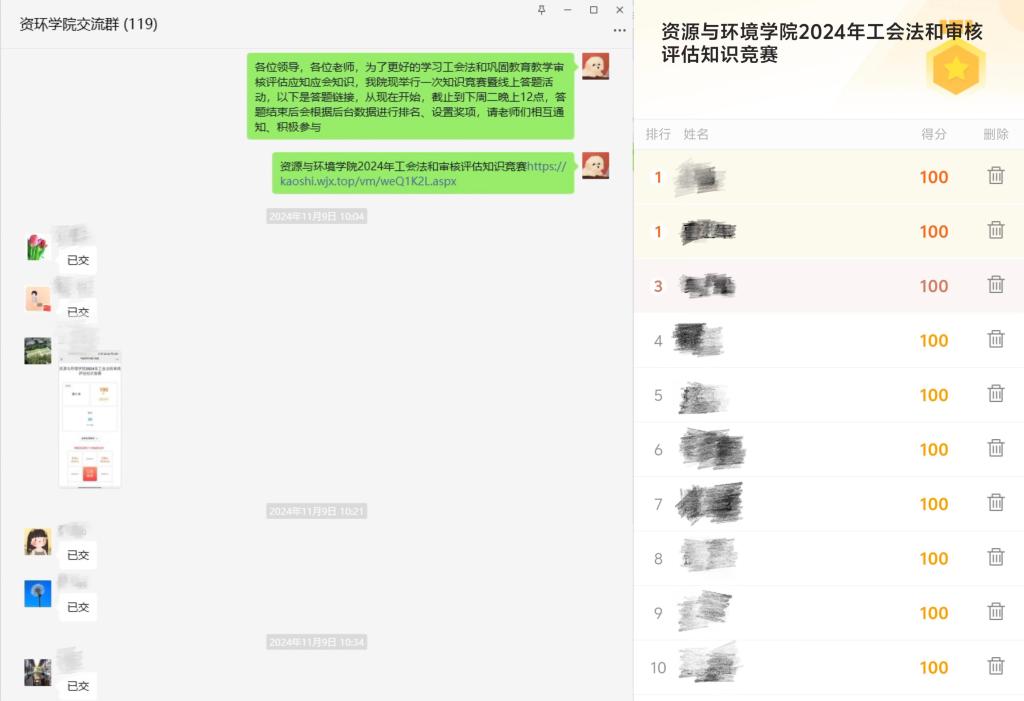 为学习、宣传和贯彻《中华人民共和国工会法》,大力推进工会建设,发挥工会在社会主义现代化建设事业中的作用,维护广大教职工的合法权益,同时,为贯彻落实新一轮本科教育教学审核评估工作要求,使全院教职工深入理解审核评估指标体系和精神内涵,了解我校基本情况和示范案例等自评自建材料,争做“知识型职工”,11月9日至13日,资源与环境学院举行2024年工会法和审核评估知识竞赛。