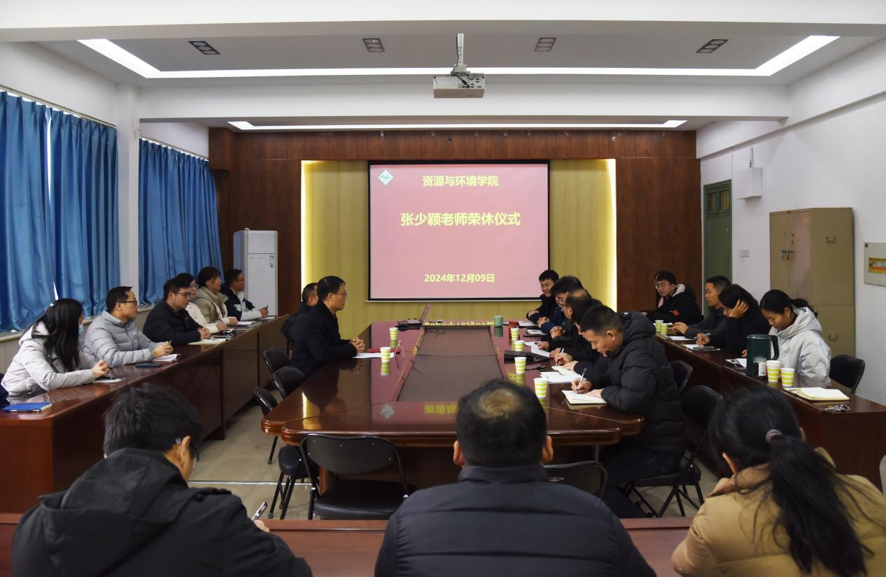 12月10日上午,资源与环境学院在实验楼E307会议室举办了学院原党建组织员张少颖荣休仪式,副校长王洪亮、学院党政领导班子及各教研室教师代表参加了荣休仪式。仪式由院党委书记王鲁伟主持。
