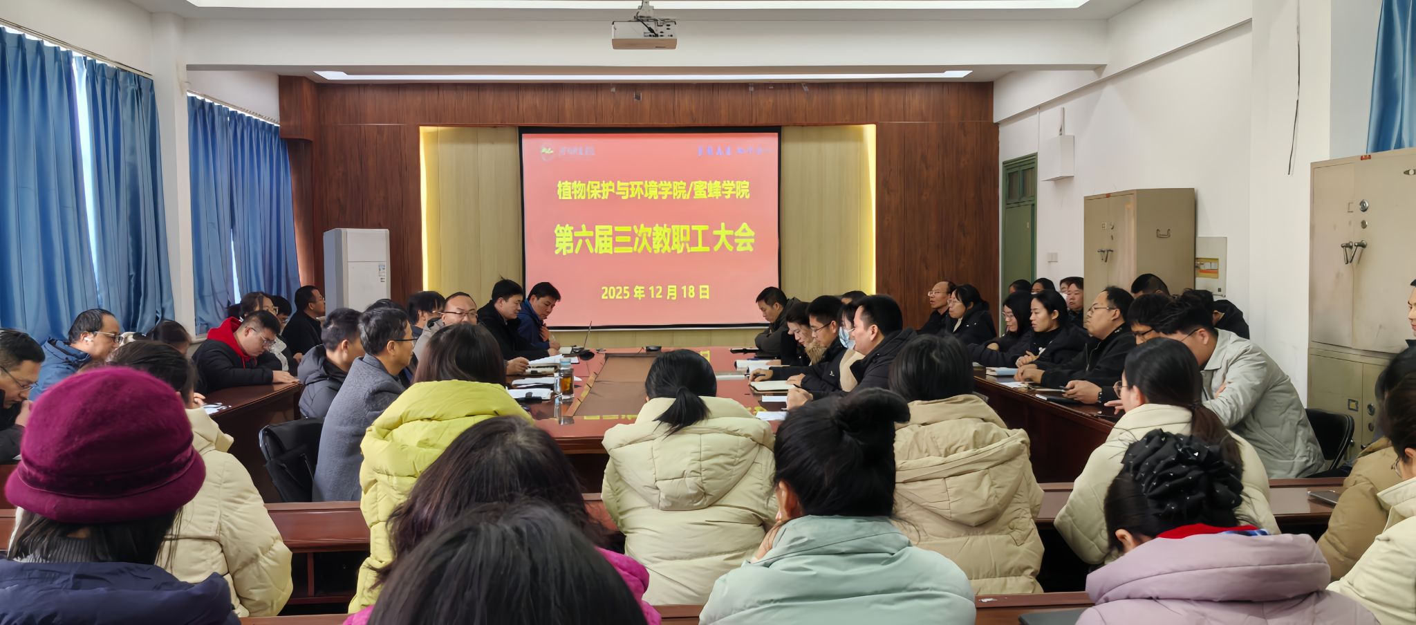 12月18日下午,91偷拍 第六届第三次全体教职工大会在实验楼E307会议室胜利召开。学院全体教职工齐聚一堂,以高度的责任感和主人翁精神,共商学院发展大计。会议由学院分工会负责人李广领主持。