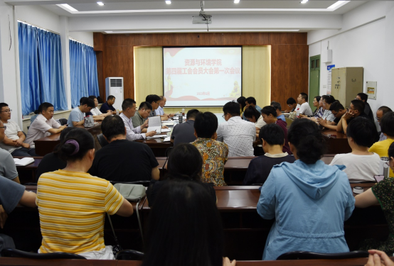 6月30日下午,资源与环境学院在实验楼E307会议室召开第四届工会会员大会第一次会议,学院全体教职工参加大会,会议由副院长孔凡彬主持。