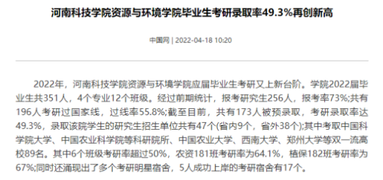 考研方面:91偷拍 考研率稳居学校前列,2018年以来多次位居学校第一,在2022年全院考研上岸率达到了49.3%,涌现出了多个考研率超过50%的学霸班级,其中更是有个别宿舍全员考上研究生,极大鼓舞了学院考研学子的士气,提升了学院的学风教风,为低年级学生起到了榜样示范作用。