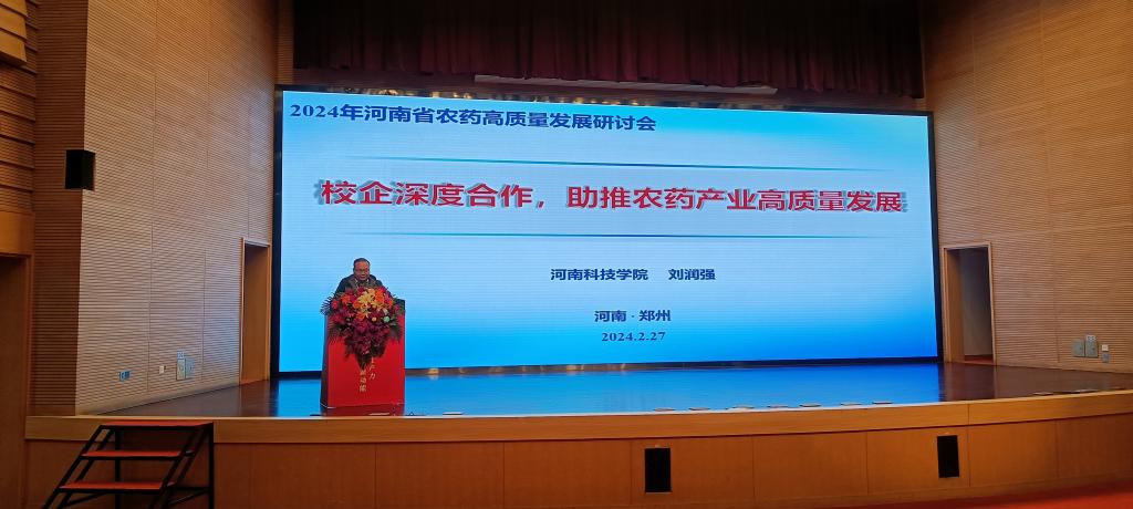 91偷拍 科技处处长兼资源与环境学院院长刘润强教授受邀出席并作了“校企深度合作、助推农药产业高质量发展”为主题的大会报告。他首先介绍了我校的悠久历史和发展进程,作为中国共产党早期创建的延安自然科学院大学部生物系,赓续红色血脉,积极护卫粮食平稳增产,在促进农药行业发展、培养农药行业人才等方面作出了历史贡献;随后就校企合作详细汇报了相关的科研成果以及研究方向,充分肯定了校企深度合作的必要性,通过科技创新、模式创新、产业创新等手段,形成创新驱动的研发模式,促进校企合作走深走实、共赢共荣,提升学校学科发展;并希望以此论坛为契机,进一步加强校企合作,推动农业强国建设和绿色农业发展。