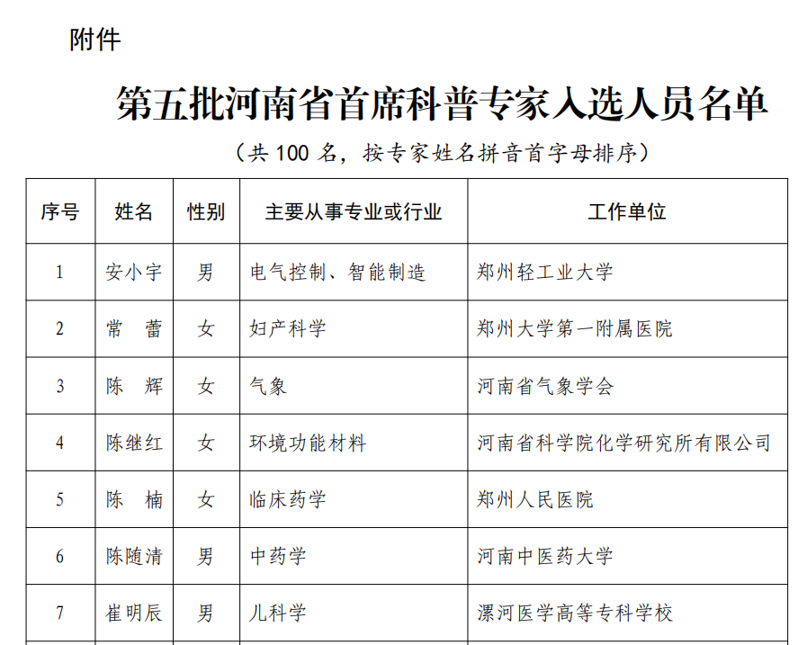 河南省首席科普专家是我省科普工作领域的最高荣誉性称号,是引领、推动、创新科普工作,服务我省全民科学素质提升的高层次科普人才。首席科普专家需面向青少年、农民、产业工人、老年人、领导干部和公务员等重点人群开展多样科普活动。围绕前沿科技进展和基本科技常识等,注重科学与艺术相结合,领衔开展或参与科普创作。在承担科技计划项目、科技重大专项或重大工程项目时,通过撰写科普文章等多种方式向公众普及最新科技发明和创新成果,推进科技资源科普化。广泛利用社会力量,推动学科或行业加强科普阵地设施、科普人才团队建设。