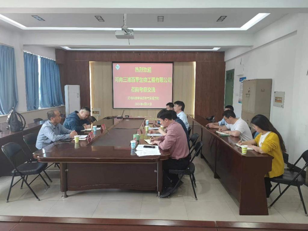 资源与环境学院党委书记王鲁伟对河南三浦百草生物工程有限公司一行莅临交流表示热烈欢迎,简要介绍了学校、学院的历史沿革,在学科建设、人才培养等方面的基本情况,并表示希望双方以此次交流为契机,加深双方合作的理解和信任,加快科技成果转化和产品创新,促进人才培养模式创新,为双方合作搭建更加坚实的桥梁。