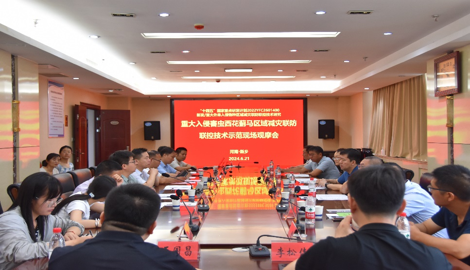 6月20-21日,由我校王刘豪主持的国家重点研发计划项目子课题“重大入侵害虫西花蓟马区域减灾联防联控技术示范”现场观摩会在新乡成功召开。会议邀请了浙江大学王晓伟,华中农业大学华红霞、马伟华,河南省植保植检站李好海,新乡市植保植检站张大明,新乡市农业科学院任广乾、任福森,项目首席科学家周忠实,我校副校长丁轲出席,科技处负责人、资源与环境学院负责人及课题组成员参加观摩会。