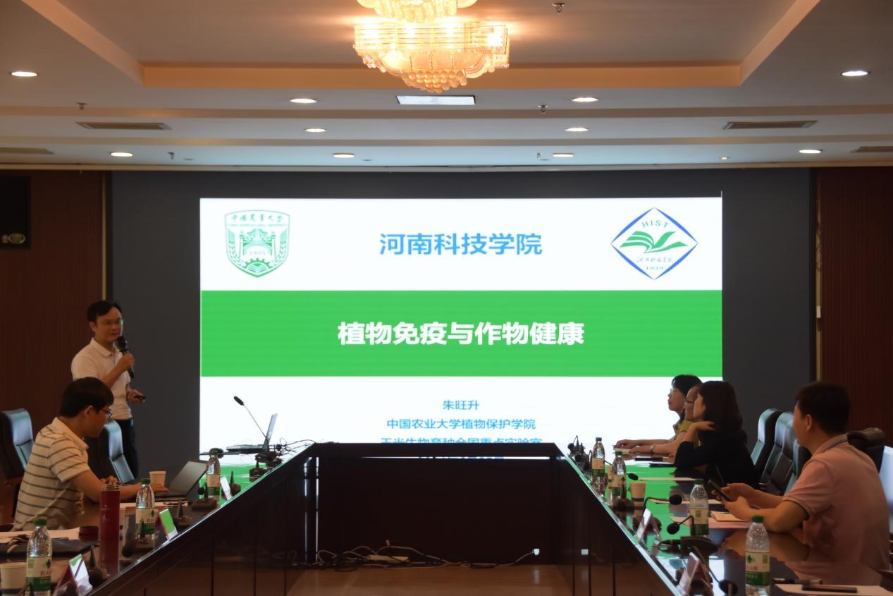 6月25日下午,中国农业大学朱旺升教授应邀在河南省生物安全科技论坛做主旨报告。报告会在行政楼206会议室举行,由科技处兼资源与环境学院院长刘润强主持,科技处副处长余昊,资源与环境学院副院长王国昌、李松伟及师生代表100余人参加报告会。