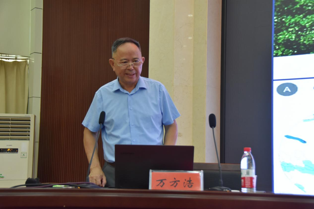 6月26日上午,国家重点研发计划生物安全专项指南专家、项目咨询专家、中国农科院创新工程生物入侵创新团队首席科学家、国际植物保护公约专家委员会委员、世界自然保护联盟入侵物种专家组成员、国际生物入侵学术交流专家组主席万方浩研究员,应邀在河南省生物安全科技论坛做主旨报告。报告会在行政楼308报告厅举行,由校长阚云超主持,科技处处长兼资源与环境学院院长刘润强、副院长王国昌、副院长李松伟及相关学科师生400余人参加报告会。