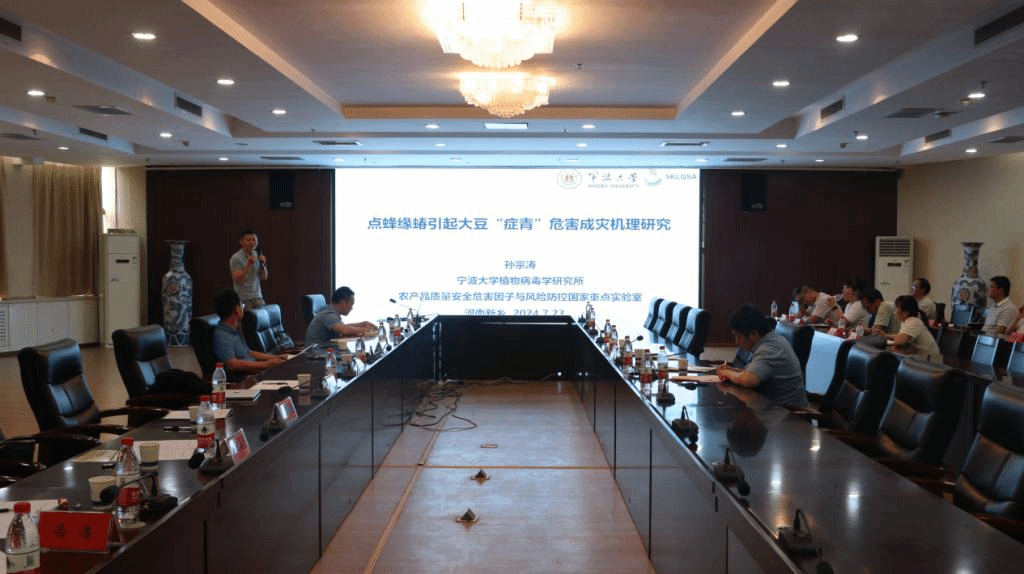 7月23日上午,国家自然科学优秀青年基金获得者,浙江省科技创新领军人才,农业农村部植保生物技术重点实验室副主任,农业农村部大豆“症青”防控专家组成员,农业农村部大豆“症青”防控专家组成员,宁波大学植物病毒学研究所孙宗涛研究员,应邀到我校进行学术交流。报告会在行政楼206会议室举行,由资源与环境学院副院长王国昌主持、资源与环境学院师生代表100余人参加报告会。