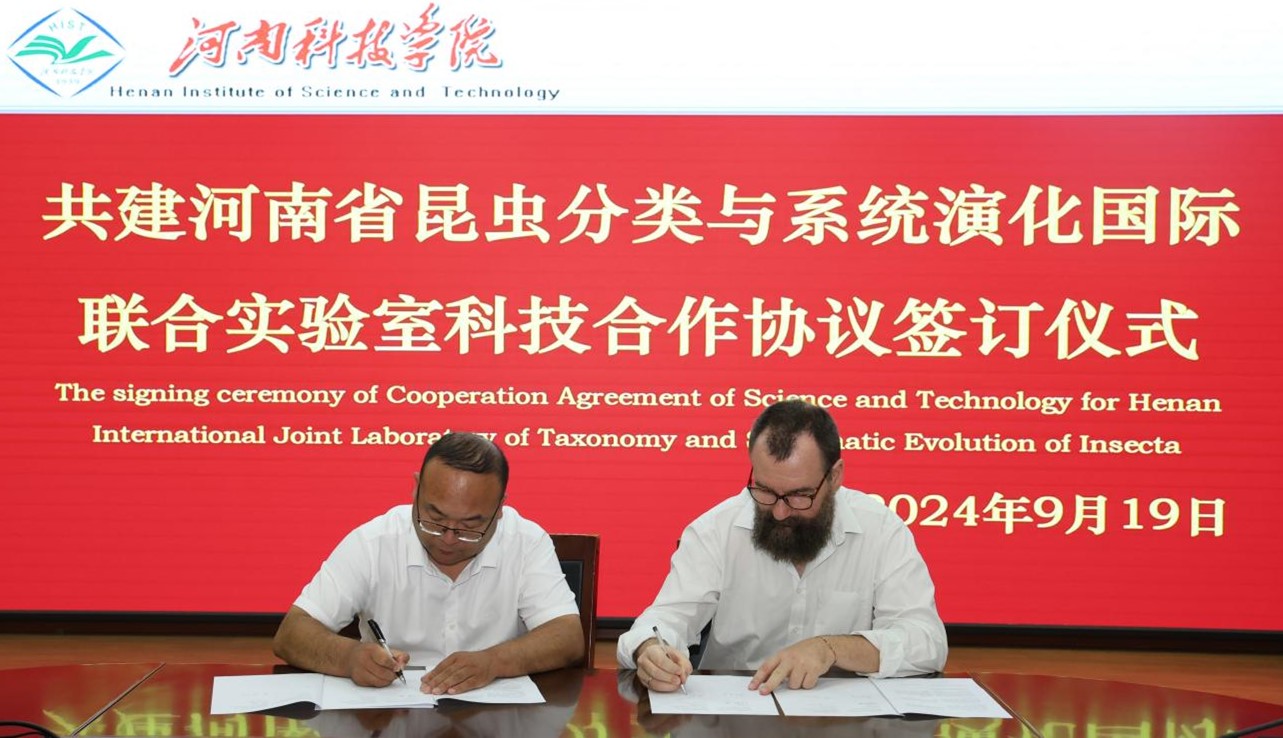 会后,Dávid Murányi博士与现场教师、学生展开热烈交流和讨论。最后,在达成长期合作共识的基础上,举行了“共建河南省昆虫分类与系统演化国际联合实验室科技合作协议签订仪式”。此次学术报告促进了我校河南省昆虫分类与系统演化国际联合实验室与匈牙利埃斯特尔哈兹大学之间的学术交流合作。