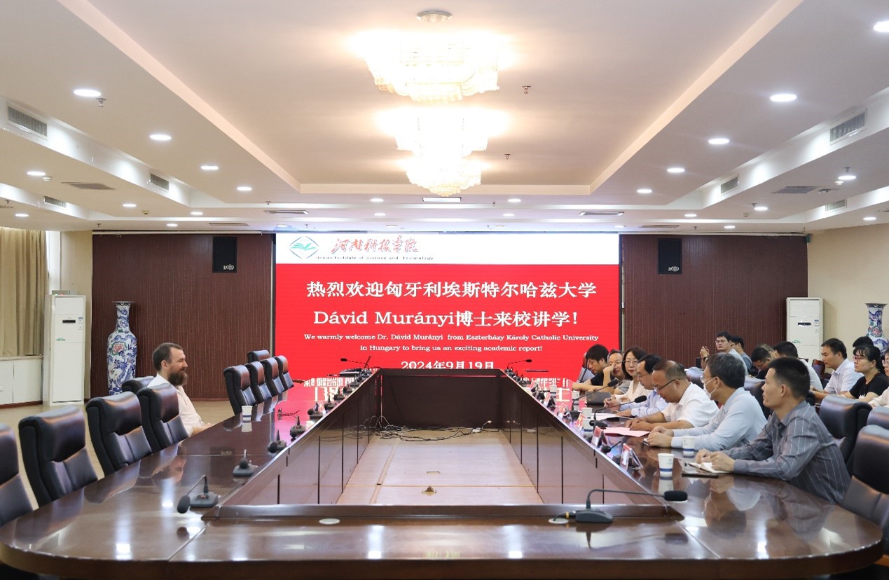 9月19日上午,匈牙利埃斯特尔哈兹大学副教授Dávid Murányi博士应邀到我校交流访问并作学术报告。报告会在行政楼206会议室举行,副校长刘全永出席,国际交流与合作处、科技处、资源与环境学院等单位负责人及师生代表100余人参加了报告会。会议由刘润强主持。