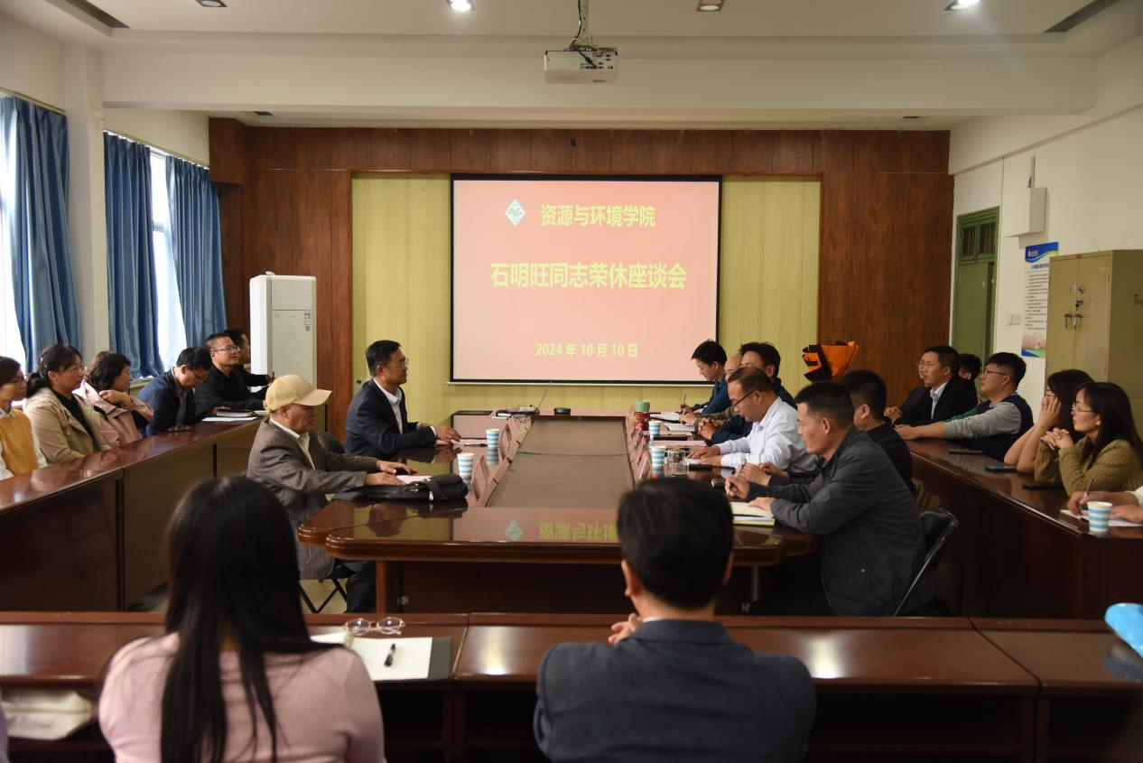 岁月峥嵘如歌,教育芳华不朽。10月10日下午,资源与环境学院在实验楼E307会议室举办了石明旺教授荣休仪式,校纪委书记贺杰、学院党政领导班子及各教研室教师代表参加了荣休仪式。仪式由院党委书记王鲁伟主持。