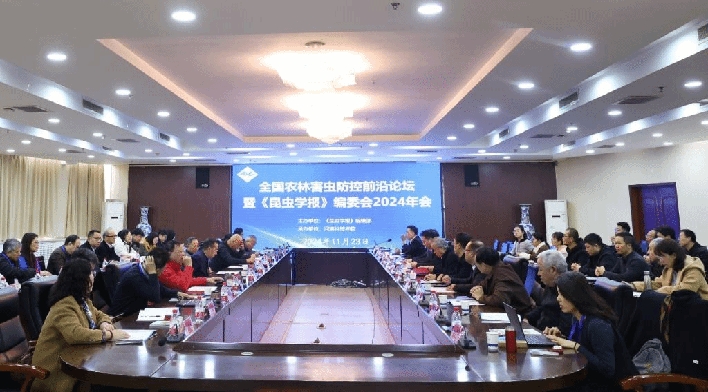 11月23至24日,全国农林害虫防控前沿论坛暨《昆虫学报》编委会2024年会在我校成功举办。《昆虫学报》主编孙江华以及来自中国科学院动物研究所、中国林业科学院、中国热带农业科学院、浙江大学、南开大学、山东大学、西北农林科技大学、南京农业大学、华南师范大学、贵州大学、山东农业大学、山西大学、河北大学、江苏省农业科学院、内蒙古农业大学、扬州大学、河南农业大学等多家单位的专家学者齐聚一堂,我校党委书记宋亚伟、副校长王洪亮、副校长丁轲、科技处处长刘润强、科技处副处长余昊参加会议,资源与环境学院300余名师生聆听了学术报告。