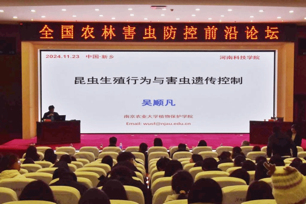 11月23日下午,国家优秀青年科学基金获得者,中国昆虫学会药剂毒理专业委员会委员,《农药学学报》青年编委,南京农业大学吴顺凡教授应邀在全国农林害虫防控前沿论坛做学术报告。报告会在行政楼308会议室举行,由副校长王洪亮主持,资源与环境学院副院长王国昌、孔凡彬及师生代表300余人参加。