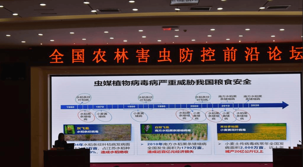 崔峰研究员以“植物病毒调控媒介昆虫翅型分化的分子机制”为题目,详细阐述了植物病毒对我国粮食安全的威胁,以及虫媒植物病毒与宿主之间的关系。着重研究了水稻条纹病毒(RSV)在不同翅型(长翅和短翅)灰飞虱中的含量和对灰飞虱翅型变化影响的分子机制,以及不同翅型灰飞虱的传播水稻病毒的能力。
