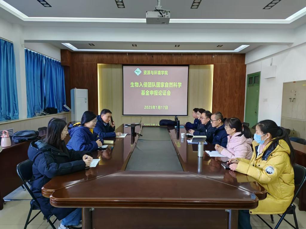 为扎实推进2025年度国家自然科学基金申报工作。1月17-18日,资源与环境学院生物入侵防控团队在实验楼E307会议室举行国家自然科学基金申报论证会,论证会由团队负责人余昊教授主持。