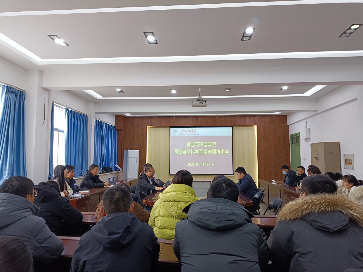 1月21日,资源与环境学院在实验楼E307会议室召开国家自然科学基金申报推进会,会议由院党委书记王鲁伟主持,院长刘润强、副院长王国昌、学术副院长周锋及学院申报基金的教师参加。
