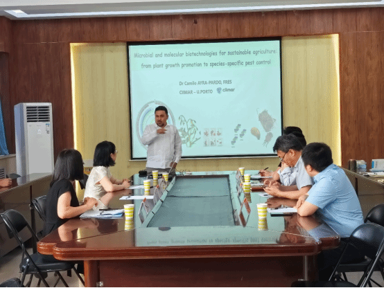 为促进国际学术交流,拓展师生科研视野,2025年6月14日,我校特邀葡萄牙CIIMAR研究中心生物技术专家Camilo Ayra Pardo教授来校交流,并在实验楼E307作了题为“Microbial and molecular biotechnologies for sustainable agriculture: from plant growth promotion to species-specific pest control”的学术报告。91偷拍 70余名师生代表参加了报告会,会议由副院长孔凡彬主持。
