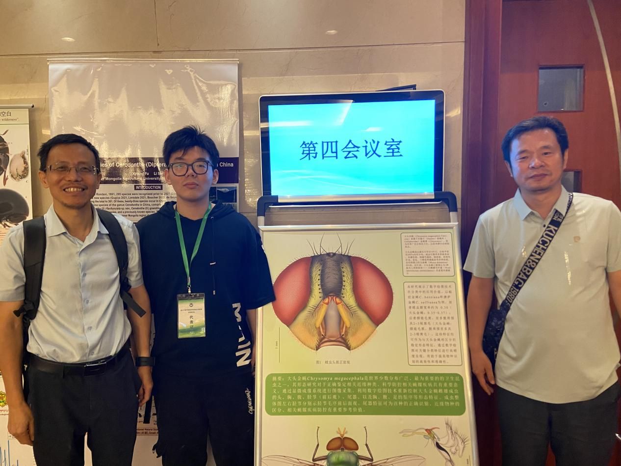 本次昆虫分类区系研讨会以墙报形式展示了崔建新团队的“大头金蝇的形态学研究”最新成果,该成果受到昆虫分类学会原理事长杨星科研究员的赞赏和鼓励。杨星科研究员指出,当前国家的生态文明建设离不开分类学者的参与,特别昆虫数字绘图家的参与,当前的重要经济昆虫的监测、防控都亟需这样精细清晰的作品参与科普推广,对提高昆虫快速鉴定的科学性有重要的意义。“昆虫分类学报”主编西北农林大学原校长张雅林教授、该刊执行主编花保帧教授欢迎崔老师向该刊投稿,认为这种创新对提高昆虫分类成果在生产中的快速推广有重要的意义。