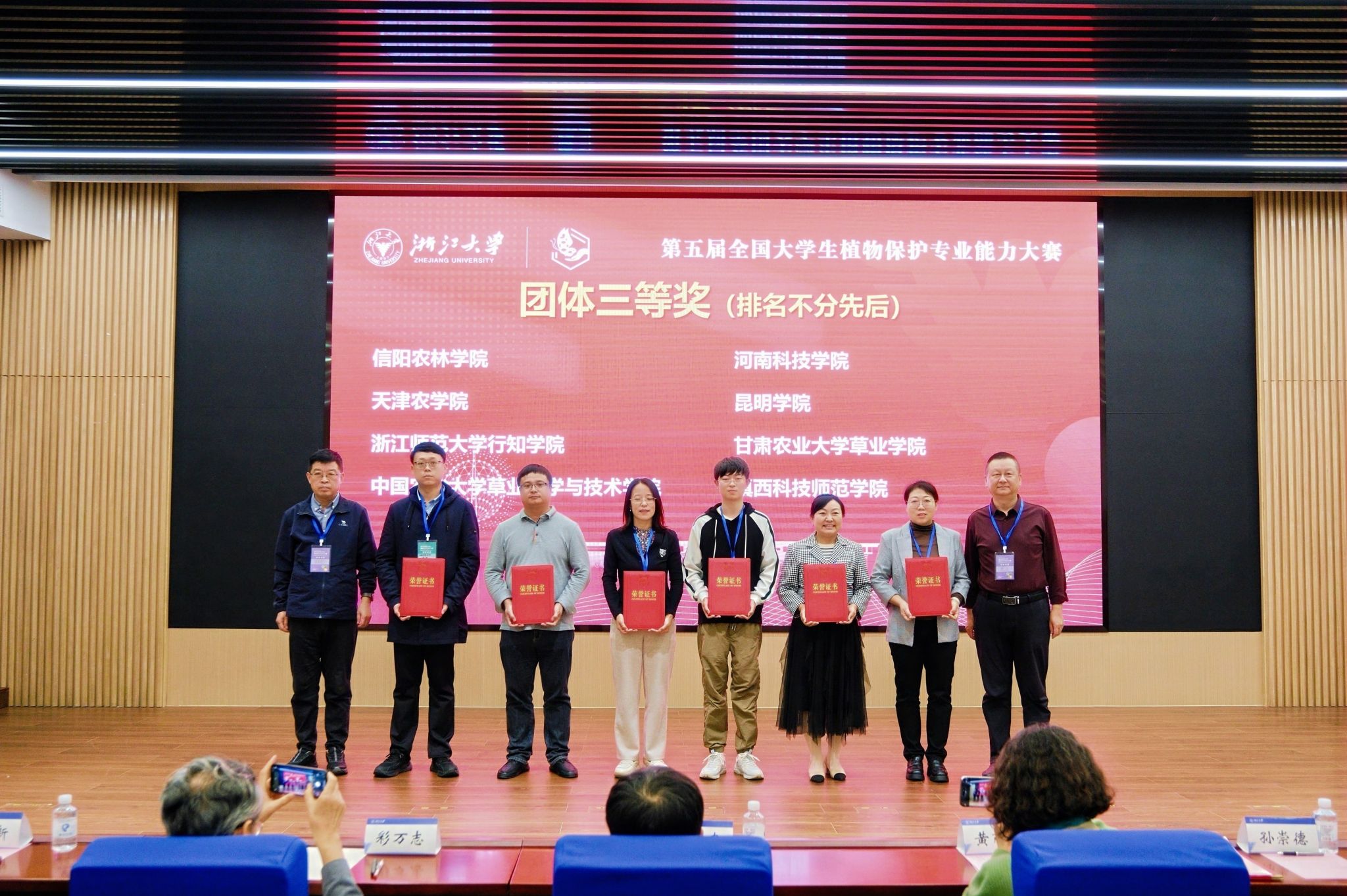 11月7日至8日,第五届全国大学生植物保护专业能力大赛在浙江大学举办。学院首次组队参赛表现优异,荣获团体三等奖,并在九个单项比赛中摘获一、二、三等奖多项,充分展现了学院在专业人才培养方面的扎实基础与突出成效。