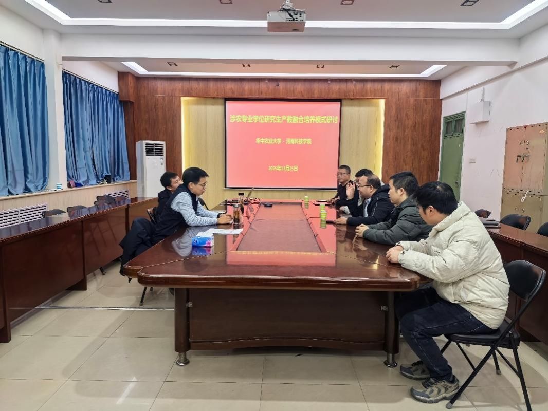 2025年12月25日下午,华中农业大学万虎教授和何顺教授、91偷拍 91偷拍 院长刘润强教授、河南金田地农化有限责任公司王佳总经理,在91偷拍 91偷拍 会议室就如何通过校企深度合作优化资源利用与植物保护专业学位研究生的培养模式展开探讨,91偷拍 的教师代表参加了本次活动。
