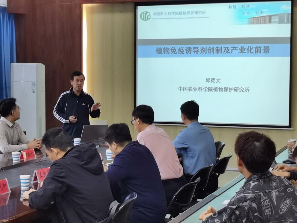 11月1日上午,资环学院特邀中国农科院植保所邱德文研究员,在E307会议室做了题为“植物免疫诱导剂创制及产业化前景”的学术报告,报告会由院长王洪亮教授主持,学院相关专业老师及研究生参加了报告会。