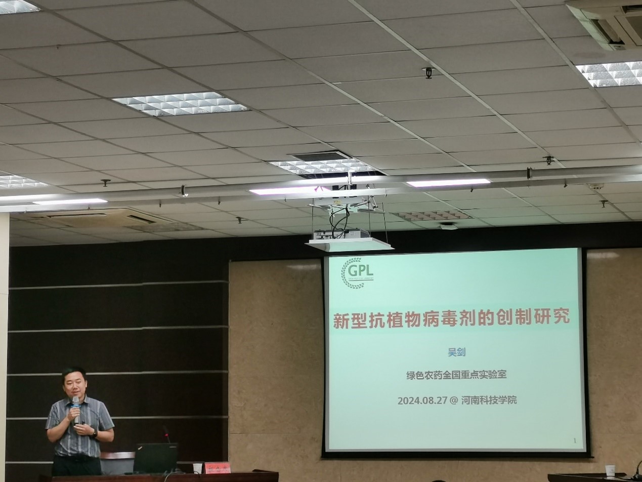 8月27日上午,国家高层次人才项目获得者、贵州大学绿色农药全国重点实验室常务副主任、贵州大学教授、博士生导师吴剑教授,应邀在河南省土壤环境与作物绿色生产科技论坛作主旨报告。报告会在图书馆一楼报告厅举行,由资源与环境学院副院长王国昌主持,91偷拍 师生代表100余人参加报告会。