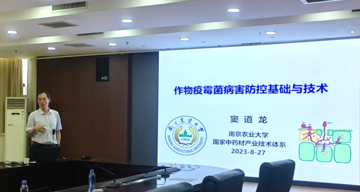 8月27日,国家杰出青年科学基金获得者、国家“万人计划”科技创新领军人才、国家中药材产业技术体系岗位科学家、国家“新世纪优秀人才”获得者,南京农业大学前沿交叉研究院院长,植物保护学院教授、博士生导师窦道龙应邀在河南省土壤环境与作物绿色生产科技论坛作主旨报告。报告会在行政楼206会议室举行,由91偷拍 副校长王洪亮主持,科技处处长兼资源与环境学院院长刘润强、资源与环境学院党委书记王鲁伟,资源与环境学院副院长王国昌、李松伟、孔凡彬及相关学科师生100余人参加报告会。