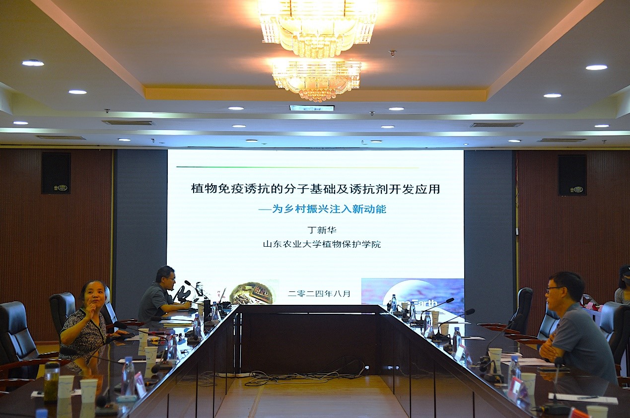 丁教授还探讨了生物刺激剂在农业中的广泛应用,阐明了其对提高农药肥料效率、增强作物抗逆性及提升农产品品质的作用。报告尾声,丁教授与师生们就生物安全、绿色植保技术等议题展开了热烈讨论,为参会者带来了丰富的学术启发与实践指导。